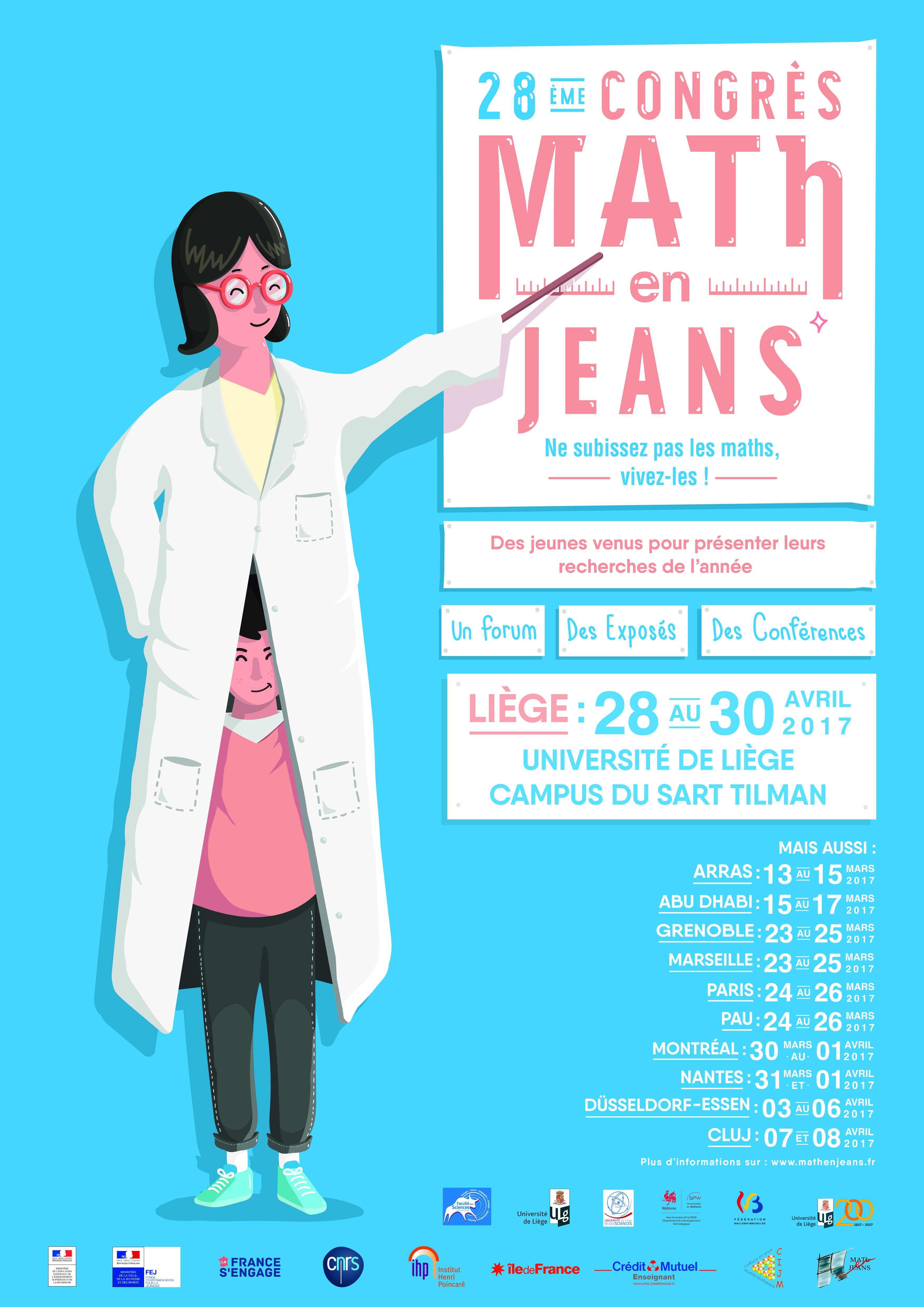 Le Département de Mathématique de l'ULg a été heureux de vous inviter au congrès MATh.en.JEANS qui s'est déroulé les 28, 29 et 30 avril 2017 sur le campus du Sart Tilman à Liège. A cette occasion, plusieurs classes venant d'Europe ayant participé à l'initiative sont venus présenter leurs travaux de façon joviale et compréhensible.